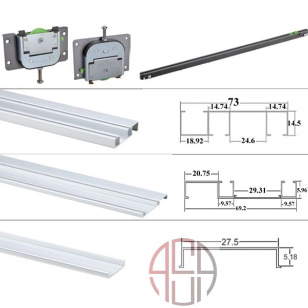 مکانیزم درب ریلی تاپ لاین 2400mm توکار دو درب فانتونی کد K023