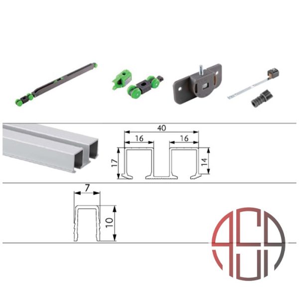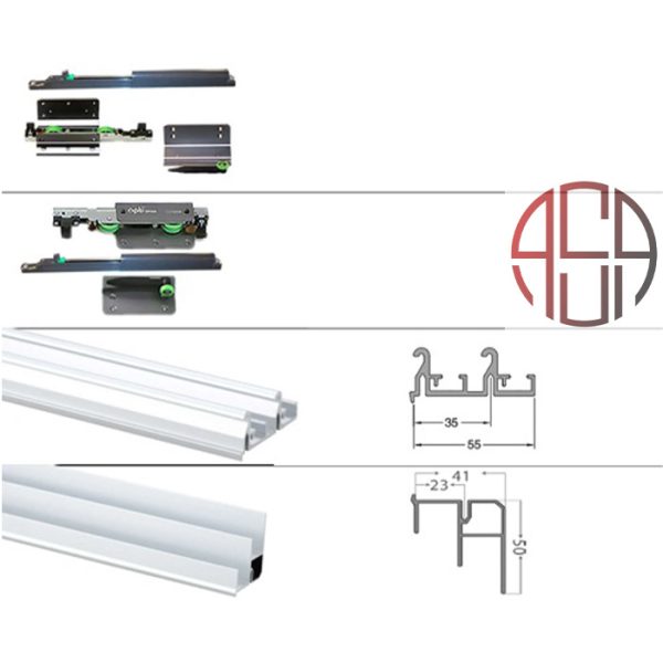 مکانیزم درب ریلی تاپ لاین 3000mm روکار دو درب فانتونی کد K025