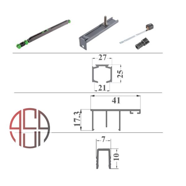 مکانیزم درب ریلی تاپ لاین توکار با آرامبند 2400mm دو درب فانتونی کد C701