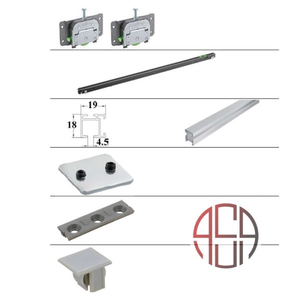 مکانیزم درب ریلی (SL) خطی دکوری روکار با آرامبند 1800mm دو درب فانتونی کد C711