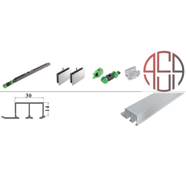 مکانیزم هوایی درب ریلی شیشه ای 2400 mm توکار با فریم آلومینیومی دو درب بدون آرامبند فانتونی کد C721
