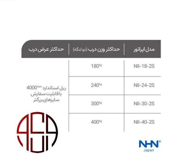 - دارای مدلهای مختلف برای جابه جایی لنگه دربهایی تا حداکثر وزن 600کیلو