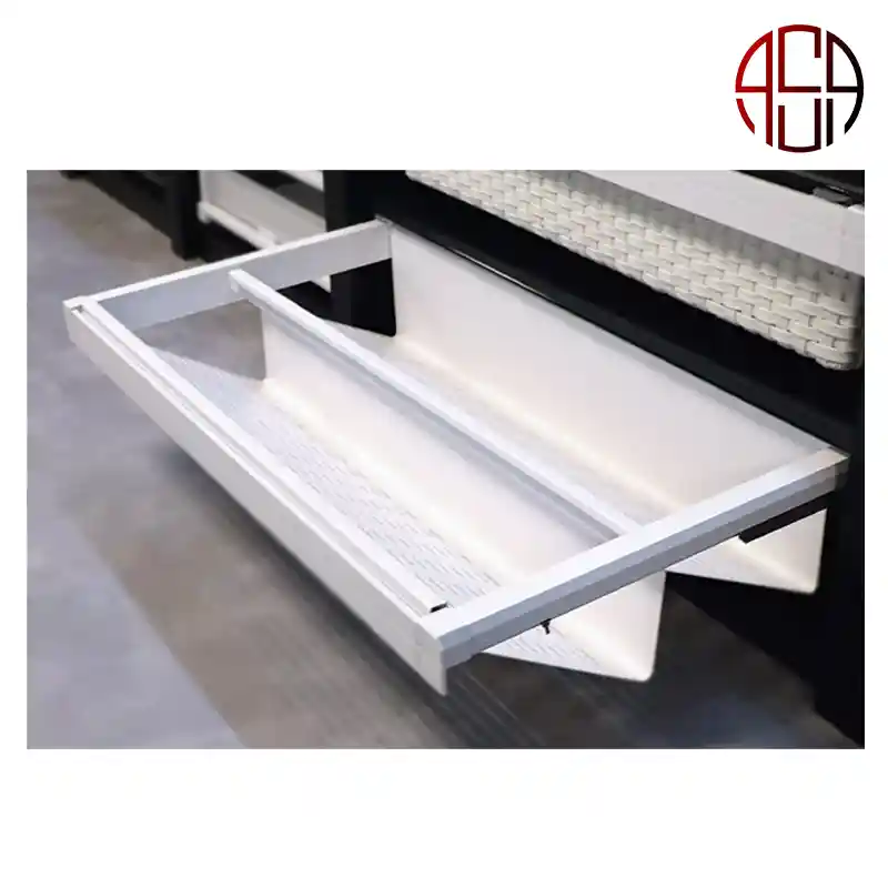 جاکفشیهای ریلی فانتونی با طراحی ایتالیایی و ساختار فلزی مقاوم، پاسخی مدرن برای نظمدهی و استفادهی بهینه از فضای کمدهای دیواری هستند. این محصولات با بهرهگیری از ریل آرامبند (Soft Close)، حرکت نرم و بیصدایی دارند و در عین سادگی، جلوهای شیک و مینیمال به فضای داخلی میبخشند. بدنهی فولادی با پوشش الکترواستاتیک و فریم آلومینیومی، دوام بالا و استحکام این مدلها را تضمین میکند. طراحی تهویهدار و ساختار باز نیز از ایجاد رطوبت و بوی نامطبوع جلوگیری میکند.