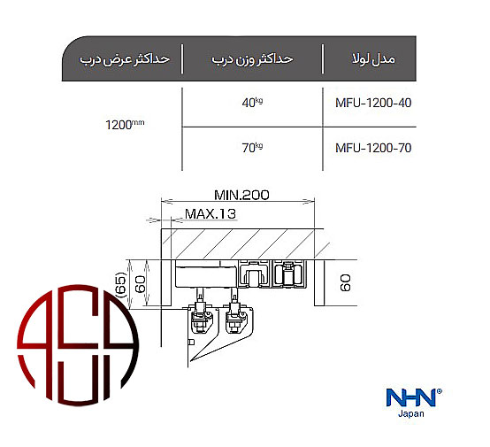 - دارای دو مدل با حداکثر وزن 40کیلو و 70کیلو و حداکثر عرض درب 120سانت