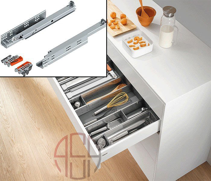 ریل تاندم فول بلوم امکان باز شدن کامل کشو را فراهم میسازد تا کاربر به راحتی به تمامی بخشهای داخلی کشو دسترسی داشته باشد. این قابلیت مخصوصاً برای کابینتهای عمیق یا کشوهای بزرگ بسیار کاربردی است.