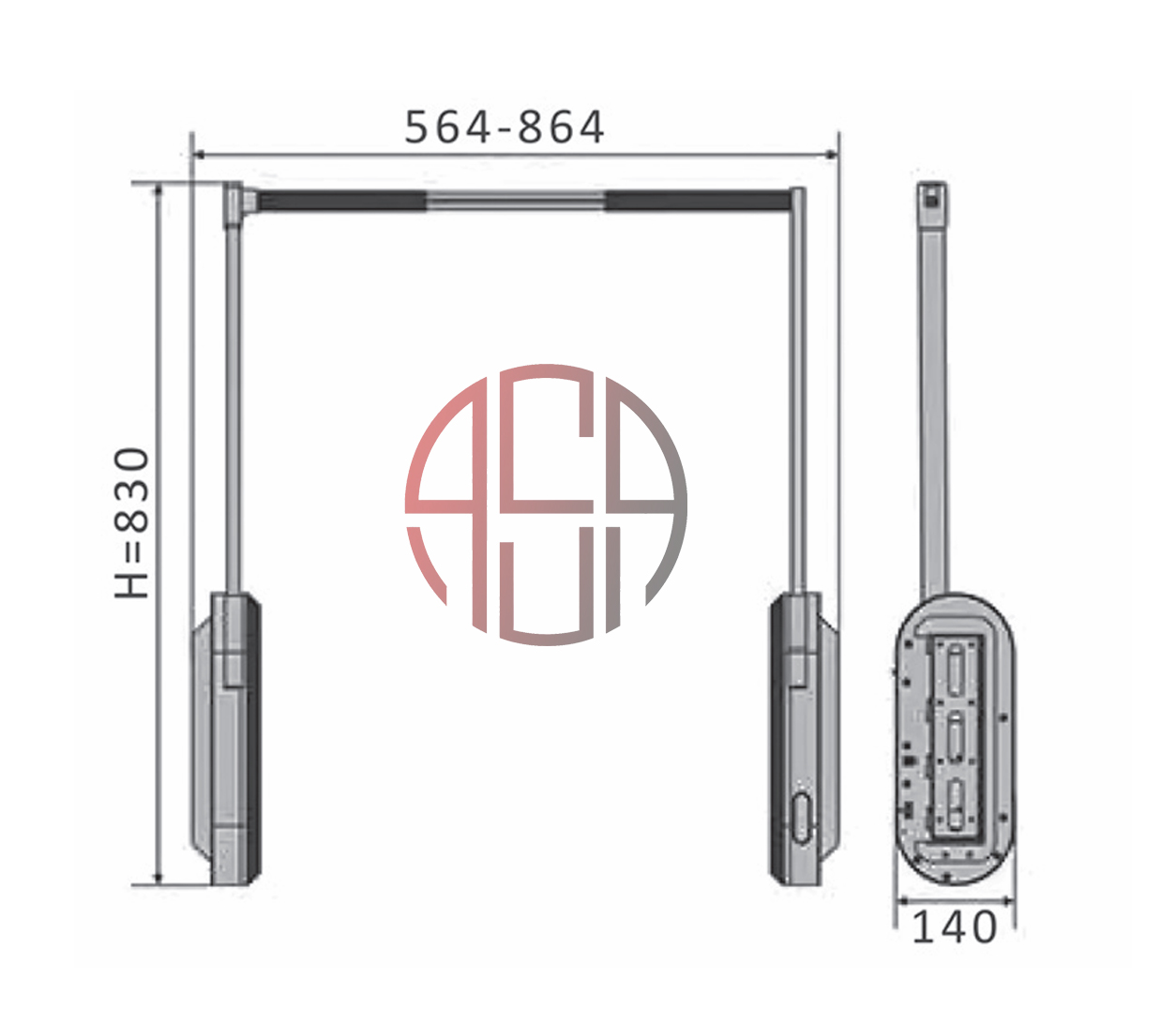 رگال با جک آسانسوری برقی نوک مدادی عرض 960mm - کد J993