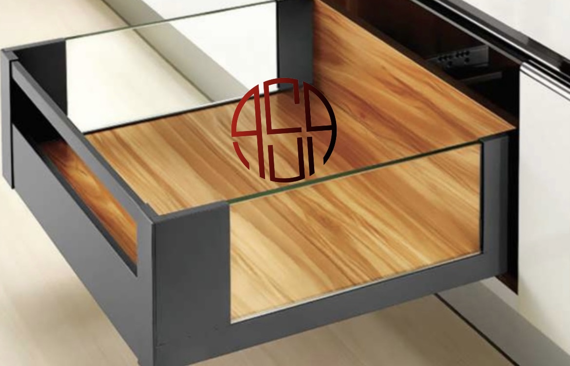 در تصویر فوق، یک کشو با طراحی مدرن و شیک به نمایش گذاشته شده است. این کشو که به وسیله شیشه شفاف در قسمت جلو نمایش داده شده، ترکیبی از متریالهای فلزی و چوبی را به کار گرفته است. قسمت فلزی از رنگ تیرهای برخوردار است که تضادی جذاب با رنگ چوبی داخل کشو ایجاد کرده است. این کشو با استفاده از شیشه به عنوان یک لایه ظریف در قسمت جلو، حس سبکی و مدرن را به بیننده منتقل میکند.