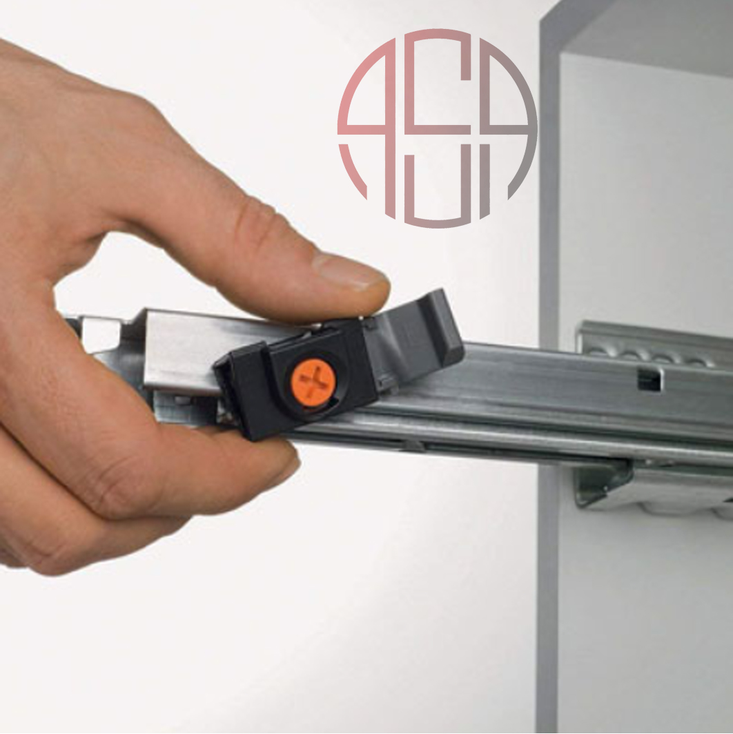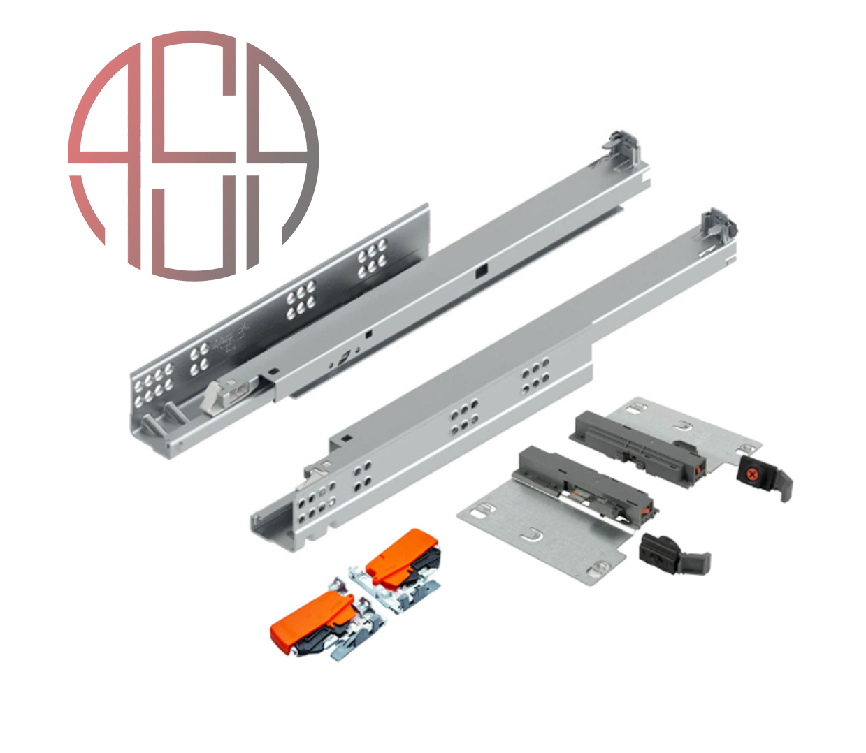 ریل کشو فشاری سری 560H بلوم به راحتی تا وزن 30 کیلوگرم را تحمل می کند و به دلیل استفاده از سیستم TIP-ON (فشاری یا تاچ) نیازی به نصب دستگیره جهت باز کردن کشو ندارد. غلتک های نایلونی استفاده شده درون ریل ها اصطکاک بسیار کمی در حین حرکت دارند و ، با کمک به توزیع یکدست وزن کشو ، به خوبی از ایجاد سایش جلوگیری می کنند. این مدل مجهز به یک جفت قفل بوده که در قسمت زیرین کشو نصب می شوند و جدا کردن کشو از ریل را برای شما بسیار آسان می کنند.