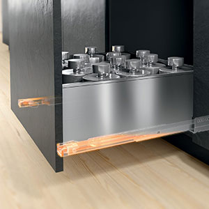 ریل بدنه دار سری LegraBox بلوم دارای بدنه استیل به ارتفاع 90.5 و ضخامت 12.8 میلی متر به رنگ خاکستری تیره می باشد. ریل این مدل از نوع 40 کیلوگرمی بوده و مجهز به سیستم آرام بند است.