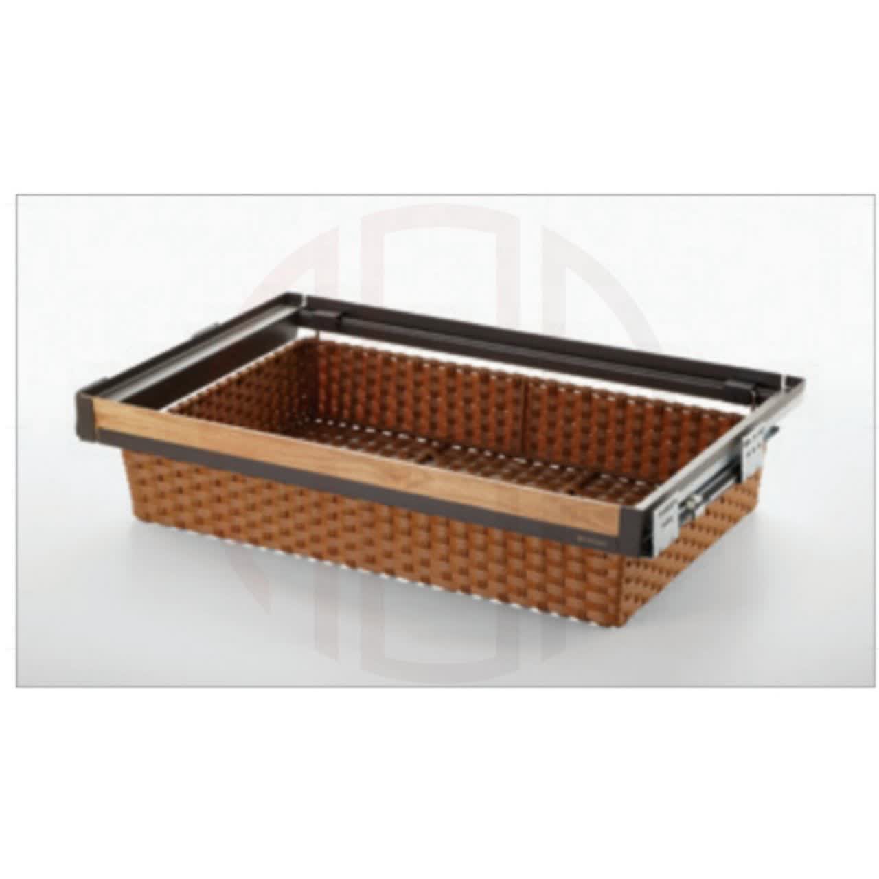سبد حصیری ریلی با فرانت چوب WS4141 – یونی هوپر در دو سایز 600mm و 900mm عرضه میشود تا با انواع کابینتها سازگار باشد و پاسخگوی نیازهای مختلف شما باشد. رنگ موکا این سبد، جلوهای گرم و دلنشین به فضای آشپزخانه شما میبخشد.