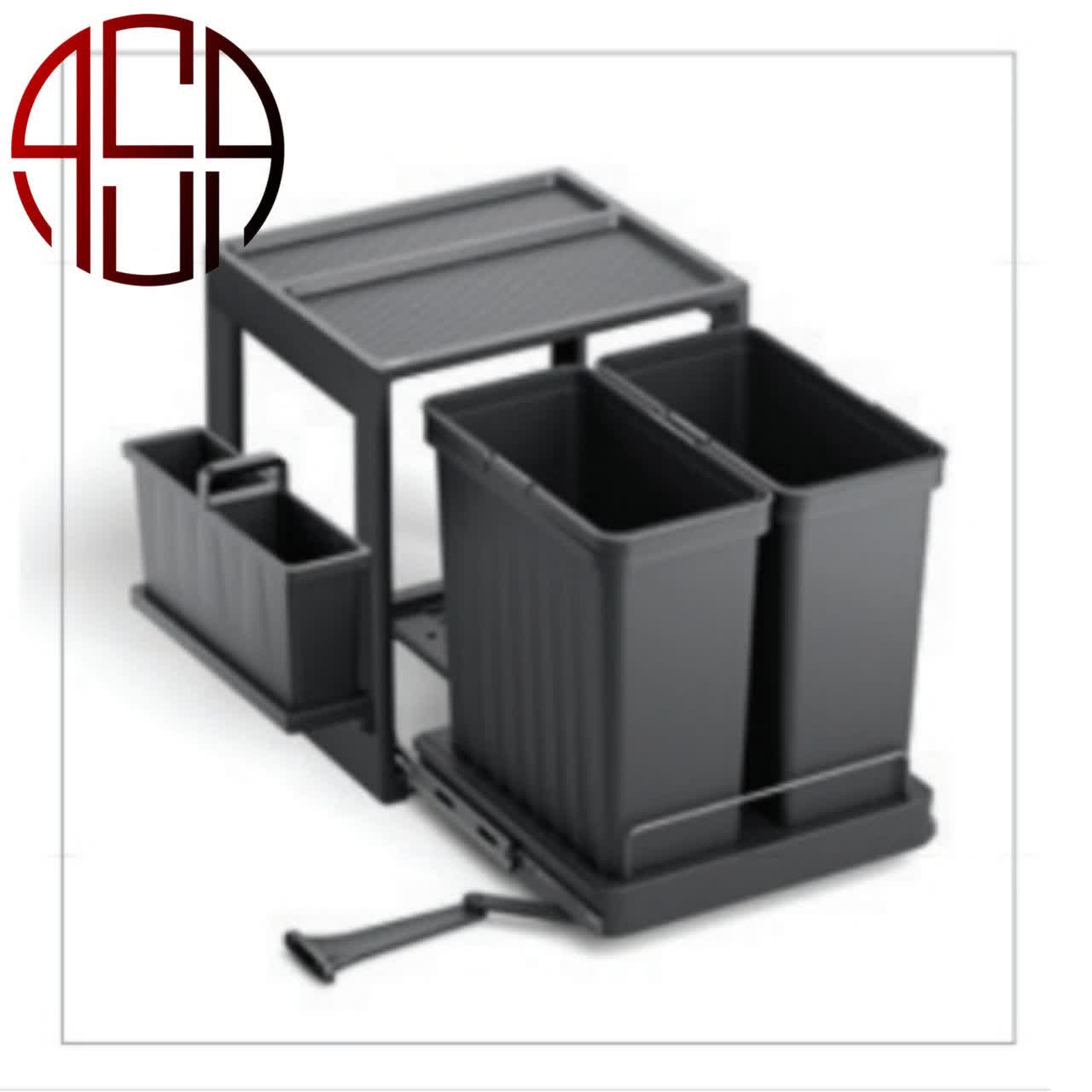 سطل زباله ریلی داخل کابینت دو مخزن 52 لیتری ملونی مدل 9251