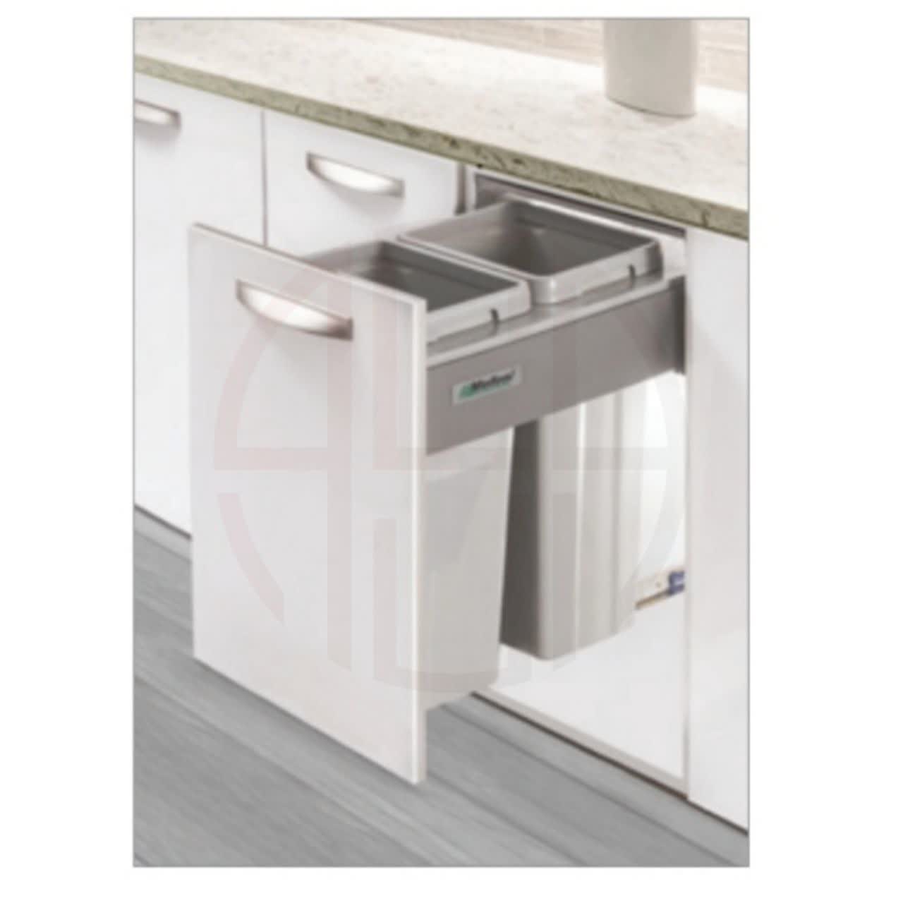 سطل 2 مخزنه ریلی آرامبند ملونی، با طراحی کاربردی و مکانیزم آرامبند، تفکیک زباله را آسان و بیصدا میکند.
