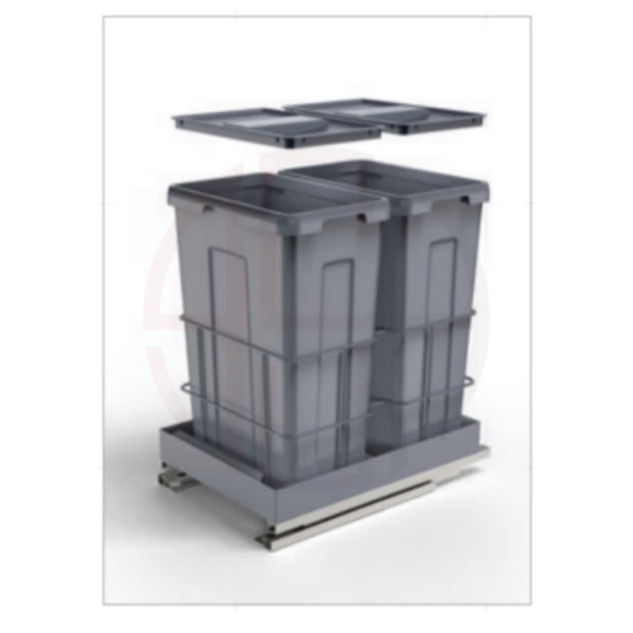 سطل زباله 2 مخزنه ریل از کف آرامبند ملونی، با طراحی زیبا و ریل آرامبند، مناسب برای تفکیک زباله در آشپزخانه شما.