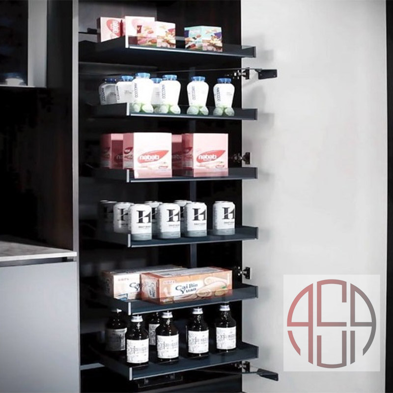 این محصول با بهرهگیری از سیستم حرکت لولایی و کشویی و طراحی کریستال، ترکیبی از زیبایی، دوام و راحتی در دسترسی به وسایل داخل کمد ارائه میدهد و برای استفاده در آشپزخانهها و فضاهای ذخیرهسازی بلند مناسب است.
