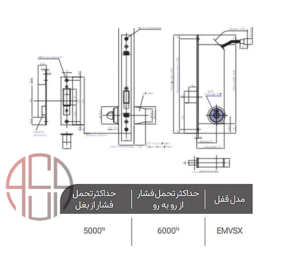 توجه : شـــکلهای فوق نشـــانگر فشـــار افقی و عمـــودی وارد بر زبانه ی قفلشـــو میباشـــد کـــه مطابق با جـــدول روبه رو میزان تحمل قفل های مختلف نشـــان داده شـــده است.