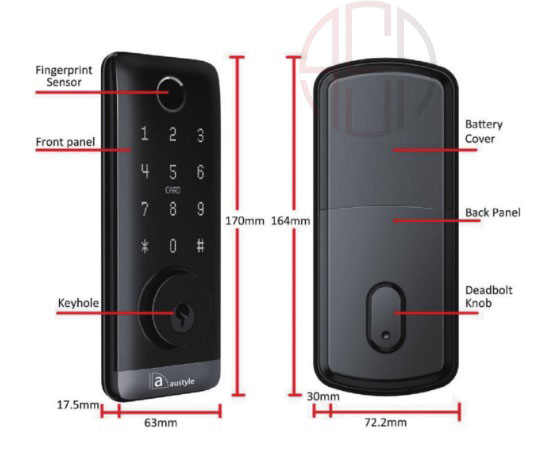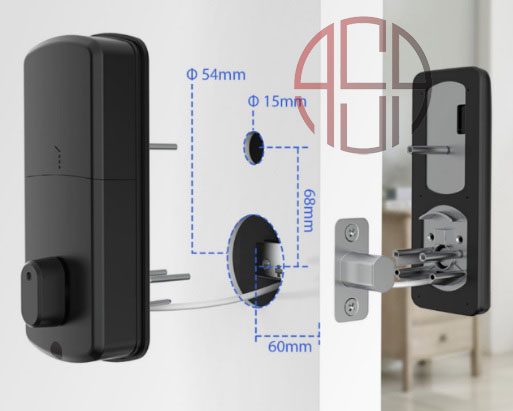 - قفل دیجیتال مخصوص درب های فریملس زبانه داخل و سنسور داخل چهارچوب با قابلیت باز کردن با اثر انگشت کارت اپلیکیشن