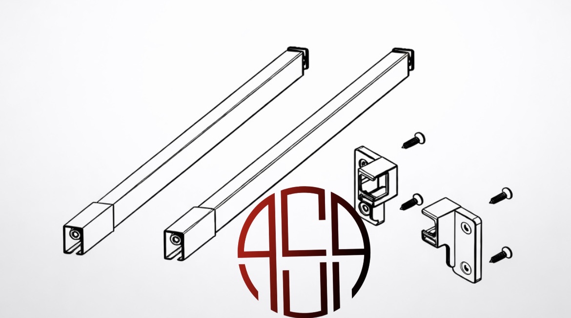 این تصویر جزئیات لوازم مورد نیاز برای نصب ریلهای اسلایدینگ و سینکرونایز را نشان میدهد. در بخش بالا، اجزای میله گالری ریل اسلیم و اسلیم شیشهای همراه با پیچهای اتصالدهنده نمایش داده شده است که برای نصب سیستمهای کشویی به کار میروند. در قسمت پایین، میله تعادل ریل سینکرونایز دیده میشود که بهطور خاص برای ایجاد حرکت همزمان و روان دربها طراحی شده است. این ریلها به دلیل قابلیت حرکت نرم و بیصدا، انتخاب مناسبی برای دربهای کشویی شیشهای و سیستمهای نیازمند هماهنگی دقیق باز و بسته شدن هستند. طراحی با کیفیت این سیستمها، نصب آسان و کارایی بالا را تضمین میکند