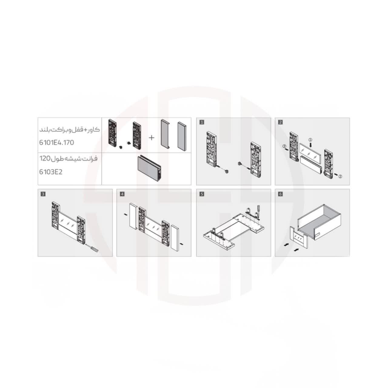 لوازم کشو مخفی کوتاه با فرانت شیشه ملونی