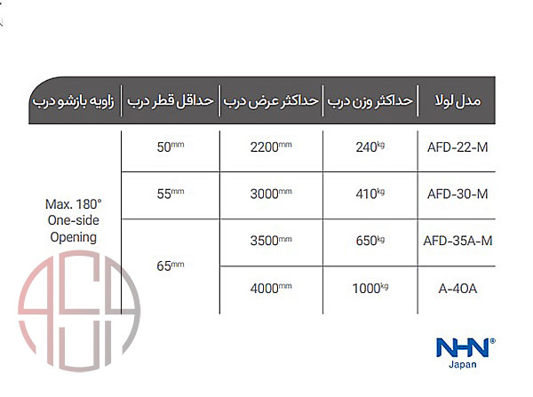 - قابلیــت تحمــل وزن درب از 240 تــا 1000 گیلوگــرم
