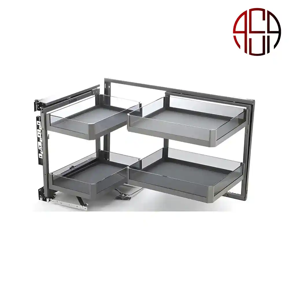 مجیک کرنر دو طبقه سری کریستال فانتونی یکی از پیشرفتهترین اکسسوریهای کابینت برای کنجها است که با طراحی ویژه و کیفیت بالا، به بهینهسازی فضای کابینت کمک میکند. این سیستم با آرامبند دو طبقه، فضای داخلی کابینت را به شکلی کارآمد و راحت قابل استفاده میسازد.