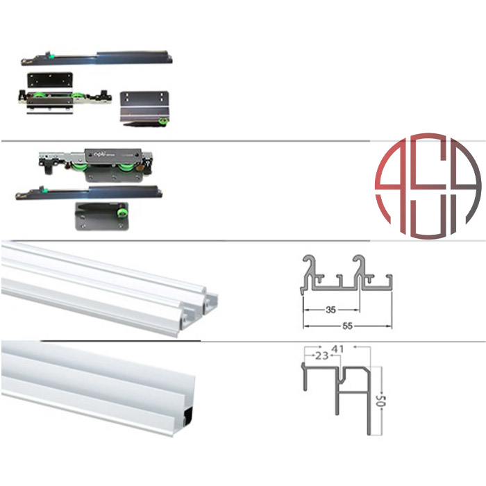 مکانیزم درب ریلی (SL) خطی دکوری روکار با آرامبند 1800mm دو درب فانتونی کد C711