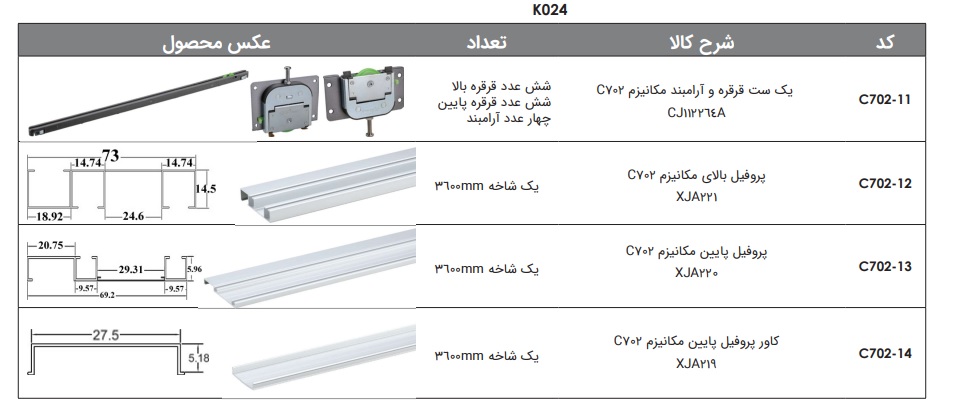 - پروفیل بالای مکانیزم C702- XJA221