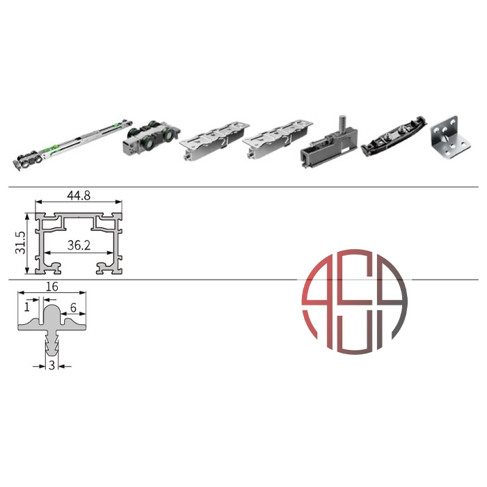 مکانیزم درب ریلی SL خطی 3600mm کتابخانه جامع روکار دو درب فانتونی کد K213