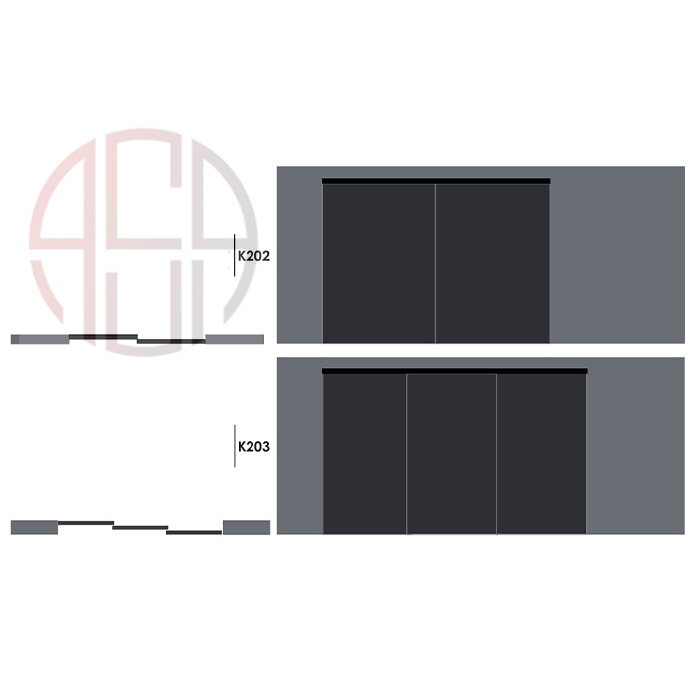 مکانیزم درب ریلی این لاین دکوراتیو 2700mm دو درب برقی متقارن فانتونی کد K080-K079