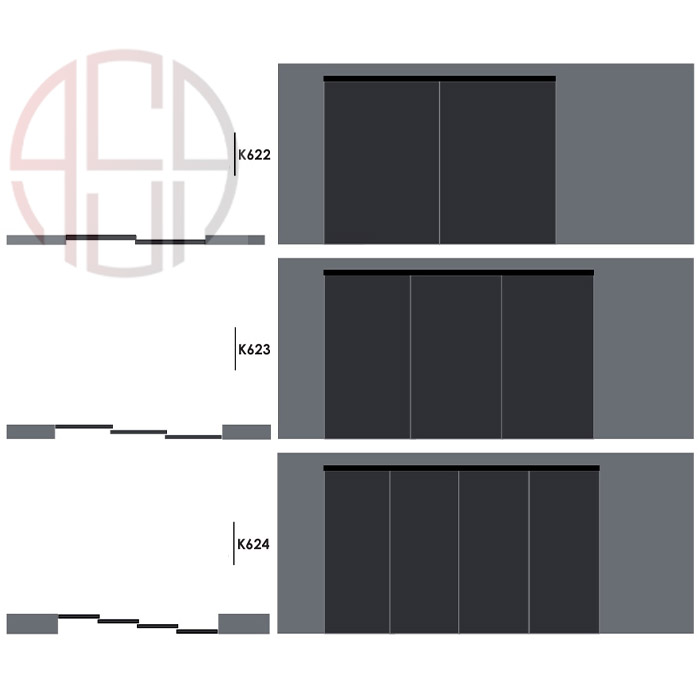 مکانیزم لینکیج دو جداره 2400mm دو درب متحرک چوبی ساختمانی دستی فانتونی کد K622: عرض درب 600mm-1200mm و ضخامت شیشه 35mm – 45mm