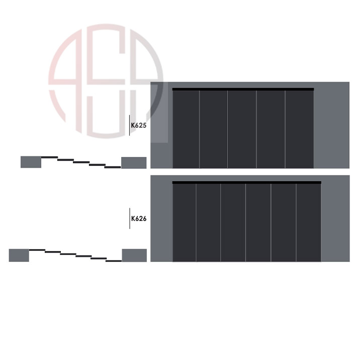 مکانیزم لینکیج دو جداره 6000mm پنج درب متحرک چوبی ساختمانی دستی فانتونی کد K625: عرض درب 600mm-1200mm و ضخامت شیشه 35mm – 45mm