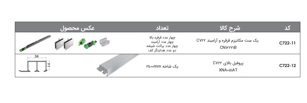 مکانیزم هوایی درب ریلی این لای چهار درب برقی سینکرونایز فانتونی کد C741- C742